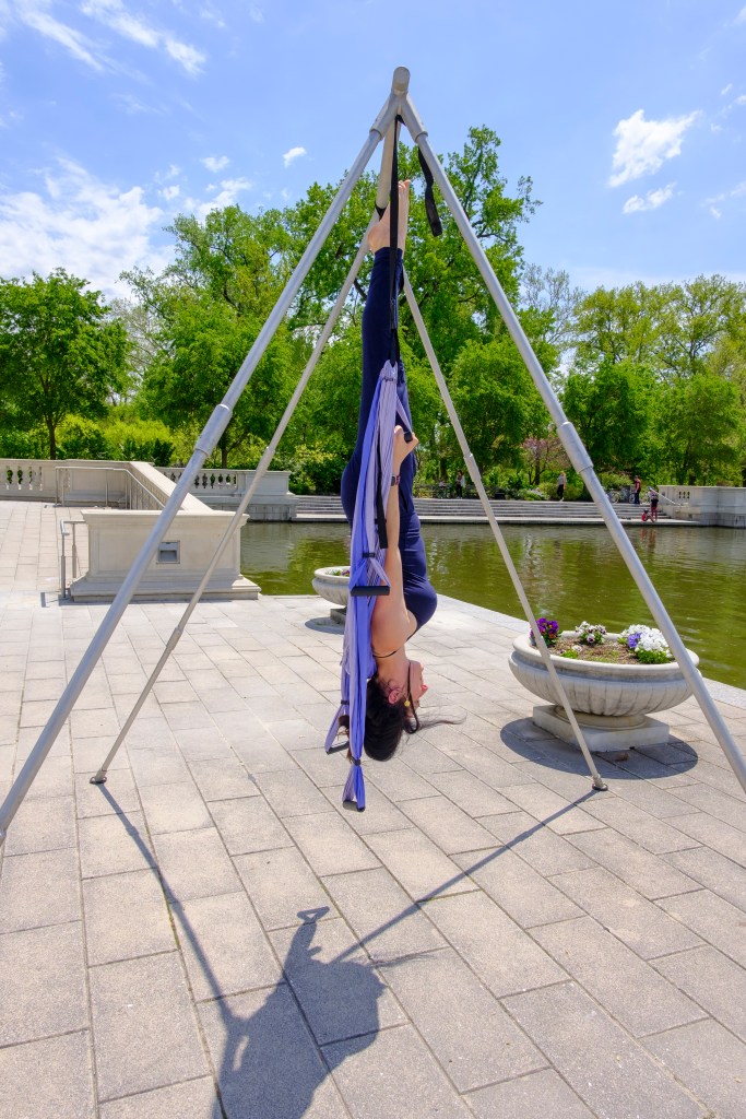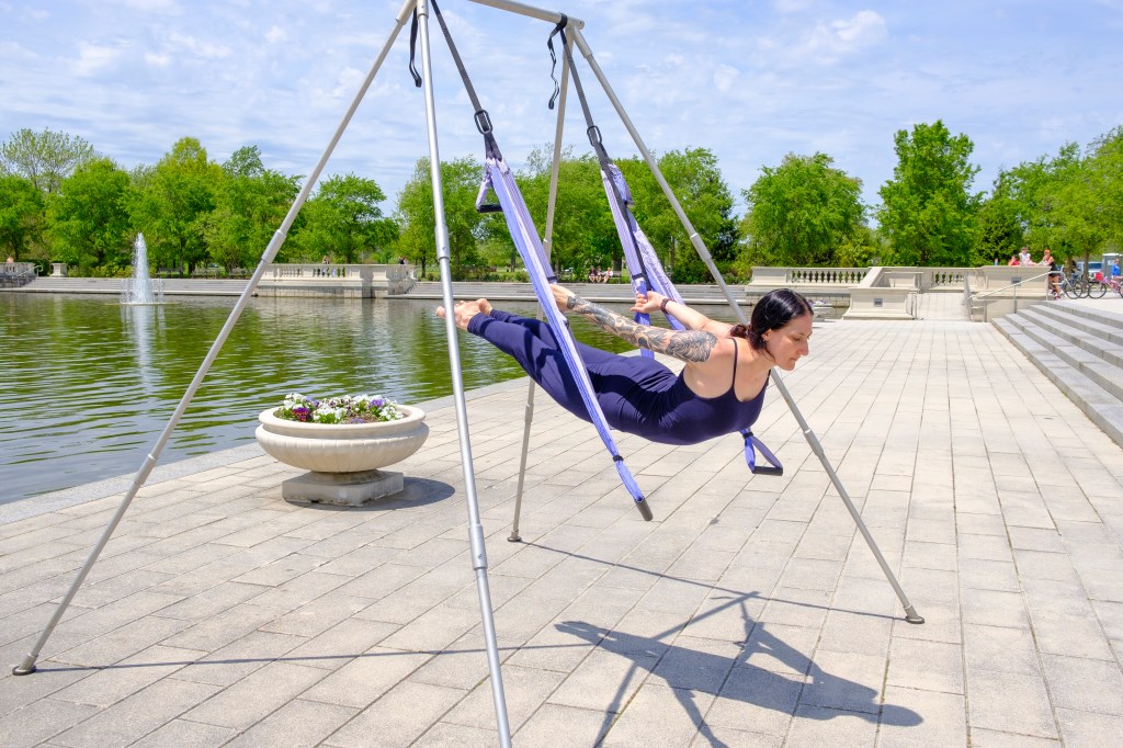 Yoga Trapeze is an inversion style of yoga that is a fantastic upper-body workout, varies in intensity and is very therapeutic. For those that may suffer with low-back pain, this could be the practice for you.